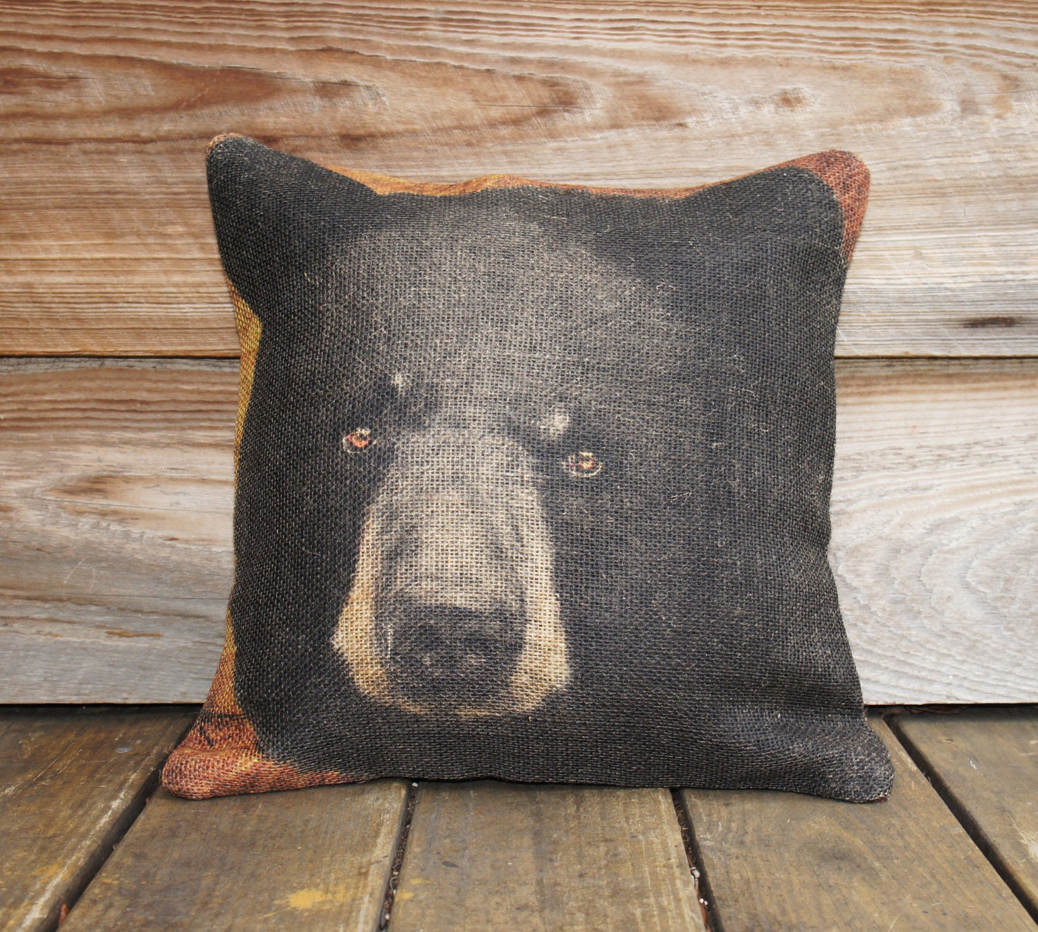Burlap Pillow Of Black Bear Throw Pillow Cushion Rustic Etsy Uk
